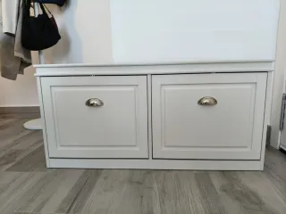 Zapatero de madera con compartimentos para organizar tus zapatos. - Diseño moderno y funcional. - Acabado en blanco y detalles en beige.