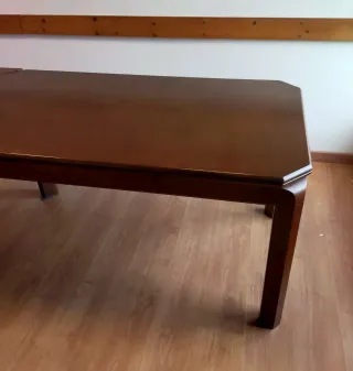 Mesa de salón con un diseño elegante y funcional. - Acabado en tono marrón oscuro. - Patas robustas para mayor estabilidad. - Superficie amplia para diversas ocasiones. Medidas: abierta 2'40x82 Cerrda:1'48x82 Altura:77'5