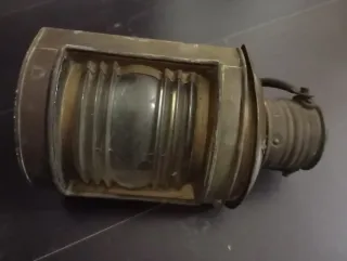 Este farol antiguo añade un toque clásico a cualquier espacio. Su diseño combina metal y cristal para un acabado elegante. - Estructura metálica dorada. - Lente de cristal con relieve.
