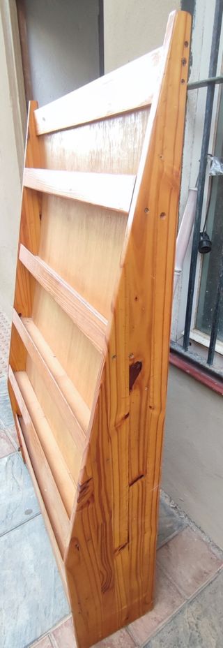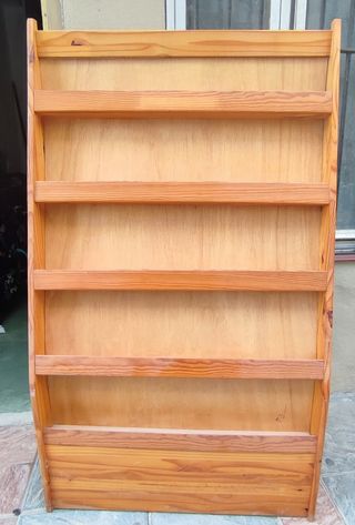 Librería de madera artesanal con estantes. Para cuentos, revistas, libros. En color madera natural se puede pintar. Hecha a mano por encargo.