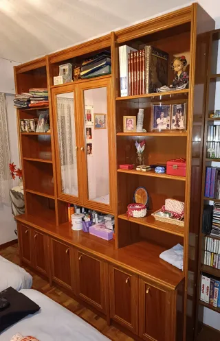 Mueble de salón de madera maciza - Diseño clásico y elegante. - Amplio espacio de almacenamiento. - Acabado en tono marrón. Practicamente como nueva, bien cuidada. No se hace envíos, el comprador tendria que venir y desmontarla para llevarsela.