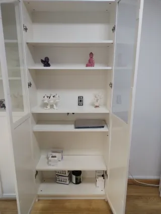 Librería blanca con puertas de cristal