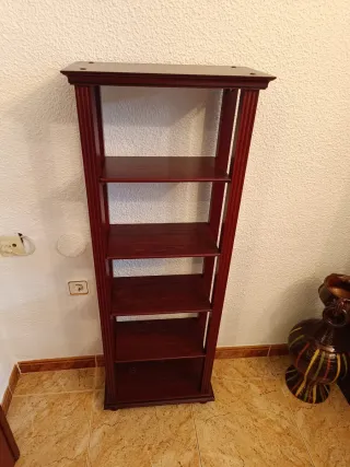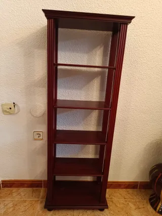 Preciosa estantería de madera maciza, ideal para salón o estudio. Se encuentra en muy buen estado. - Perfecta para organizar libros y objetos decorativos. - Diseño clásico y elegante. - Mueble robusto y de gran capacidad.