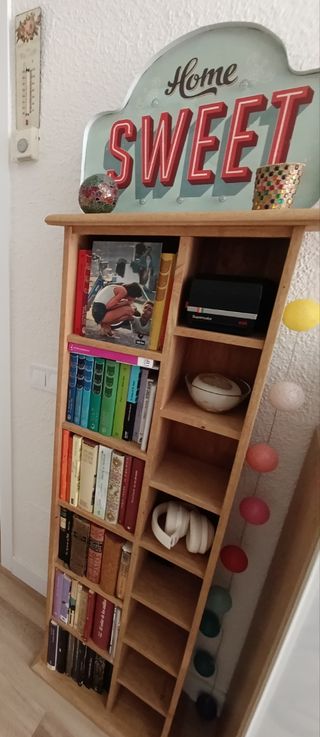 Preciosa estantería de madera, ideal para organizar libros y huecos exactos medida CDs. Se encuentra en muy buen estado. Comprada en l Corte Inglés por 350 euros. - Perfecta para cualquier estancia del hogar. - Diseño clásico y elegante. - Ofrece mucho espacio de almacenaje.