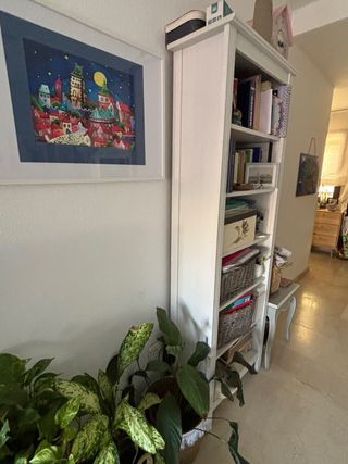 Estantería baja blanca y libreria