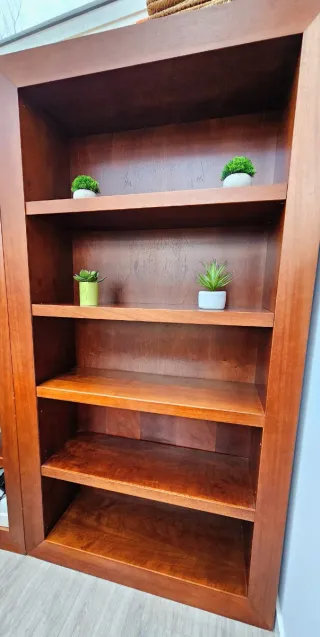 Bonita librería de madera maciza, ideal para organizar tus libros y objetos. Se encuentra en muy buen estado. - Perfecta para cualquier habitación. - Siete estantes amplios y resistentes. - Diseño sencillo y elegante.
