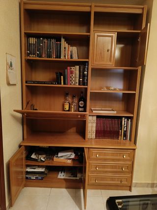 ESCUCHO OFERTA. Bonito mueble de salón de madera, ideal para organizar libros y objetos. Se compone de estantes, armarios y cajones. Está en buen estado. - Mueble de salón de madera. - Perfecto para almacenar libros y objetos. - Incluye estantes, armarios y cajones.