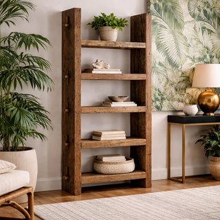 La Librería Walding de Vical Home combina madera recuperada de mango natural con un diseño robusto y cálido que aporta carácter tropical y artesanal a cualquier estancia. Cada pieza, elaborada de forma manual, presenta variaciones únicas de color y textura que refuerzan su autenticidad. Con sus amplios estantes y estructura sólida ofrece un espacio elegante para exhibir libros, plantas u objetos decorativos. Su acabado en tono marrón realza la veta natural de la madera, aportando sofisticación y naturalidad al ambiente. Ideal para interiores que buscan equilibrio entre estética, funcionalidad y sostenibilidad.