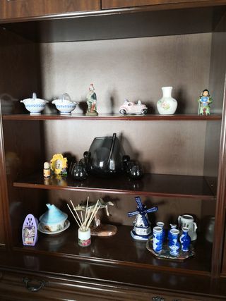 Vendo mueble librería, aparador de madera. Los artículos que se ven en la foto no entran en el precio. Solo venta en persona.