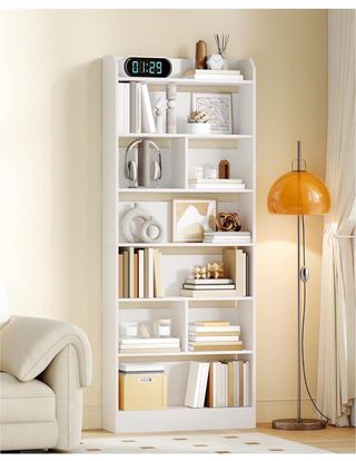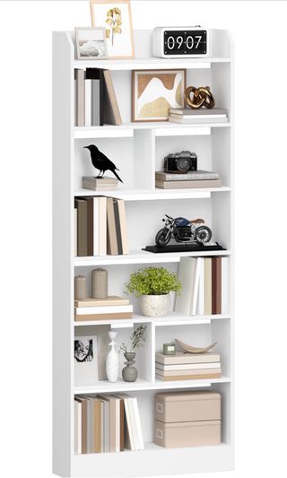 Estantería tipo librería con un diseño moderno y funcional. Ideal para organizar libros y objetos. - Estructura de madera. - Color blanco.