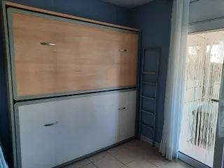 Se vende litera abatible ideal para optimitzar espacio con colchones y nórdicos incluidos. Ideal para optimizar el espacio. - Estructura de madera y metal. -Acabado en color Haya y blanco. - Se incluyen Colchones y nórdicos en buen estado. -Medidas: Plegadas:205 de alto x 210 de largo x 34 de ancho Abiertas: 1m de ancho Se entregan tambien por el mismo preciós 2 colchones y 2 nordicos -Muy útil para habitacions pequeñas, apartamentos o estudios. -Se pueden recórrer en la poblacion de l' Escala