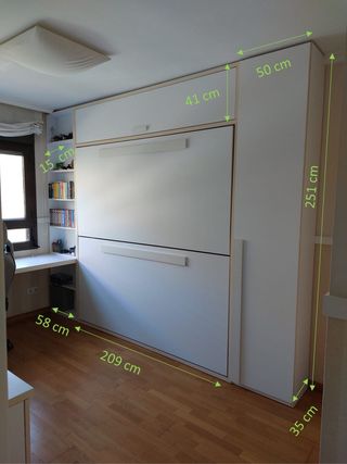Fabricamos camas abatibles en horizontal, vertical y literas, Todos las medidas disponibles, para adaptarnos a tu espacio, 3 sistemas diferentes: Pata por gravedad Pata automática Pata manual Amortiguadores Hidráulicos fabricados en España, Nosotros lo llevamos y montamos, Comunidad Valenciana, Alicante, Albacete, Murcia y norte de Almería, Pregunta cualquier duda, precio medidas, etc...