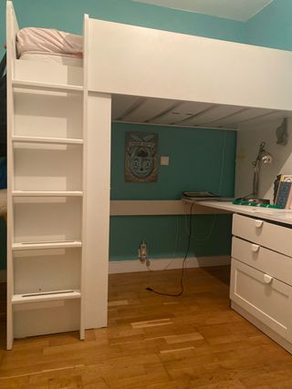 Litera SMATSAD de IKEA en color blanco. Incluye escritorio y armario. - Escritorio con cajones. - Escalera de acceso. - Armario lateral. Esta desmontado Es una cama de todos los dias Recoger el Carabanchel