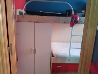 Cama litera con escritorio integrado, ideal para habitaciones juveniles. Se encuentra en buen estado. - Perfecta para ahorrar espacio. - Diseño moderno y funcional. - Incluye escritorio y estanterias -tiene un pequeño rasguño en una estanteria - se tiene que venir a buscar