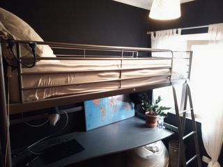 Litera juvenil Ikea Svarta con escritorio incorporada. Está en buen estado. - Estructura metálica. - Incluye escritorio. - Escalera integrada. Medidas: 186x97x207