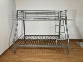 Litera matrimonial de metal, ideal para optimizar el espacio. Su diseño moderno se adapta a cualquier habitación. Se compro en junio 2025 , se ha utilizados dos veces, colchones nuevos. - Dimensiones totales: 200 cm de largo x 145 cm de ancho x 160 cm de alto. - Altura del somier inferior: 31 cm. - Altura del somier superior: 91 cm. - Profundidad de la barandilla superior: 32 cm. - Altura de la barandilla inferior: 128 cm. - Ancho de la cama superior: 96 cm. - Largo de la cama superior: 155 cm. - Espacio entre somieres: 26.5 cm.