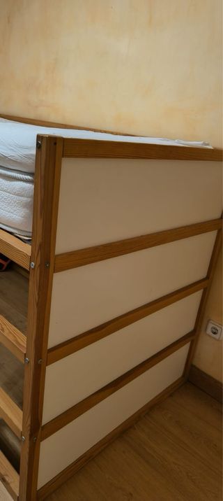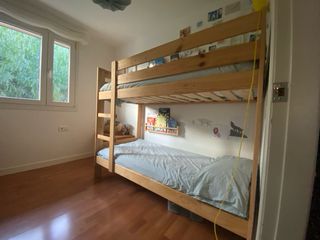 Vendo litera modelo MYDAL de IKEA de madera de pino maciza. Es una estructura muy robusta y natural, ideal para habitaciones infantiles o juveniles. Estado: Muy buen estado, madera bien cuidada. Medidas: Para colchones de 90x200 cm. Precio: 90 € (Estructura de madera y somieres incluidos; no incluye colchones). IMPORTANTE: El precio está ajustado porque la condición de venta es que el comprador debe venir al domicilio a desmontarla y transportarla por su cuenta. Es la mejor forma de asegurar que ves cómo encajan todas las piezas para luego montarla fácilmente en tu casa. La madera de pino natural permite que, si quieres, puedas