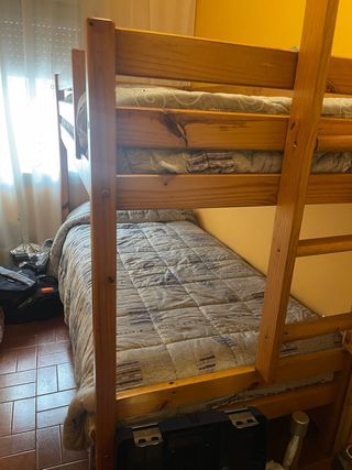 Litera de madera de pino con dos colchones incluidos. Ideal para optimizar el espacio. - Estructura robusta de madera. - Incluye dos colchones. - Diseño clásico y funcional. Hay que desmontarla y bajarla de un 4 sin ascensor. Esta en cornella