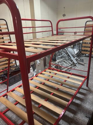 Literas resistentes y seguras, perfectas para optimizar el espacio. - Estructura principal de metal. - Base de las camas de madera.