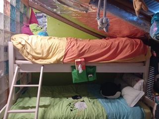 madera Maciza. apenas uso. Incluye 2 colchones, 2 almohadas, juego de sabanas y 2 edredones + 2 cajoneras debajo de la literas