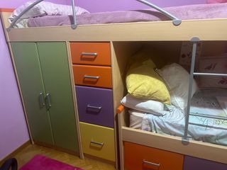 Cama litera juvenil en muy buen estado. Ideal para habitaciones juveniles. - Estructura robusta de madera y metal. - Incluye cajones de almacenaje. - Diseño moderno y funcional.