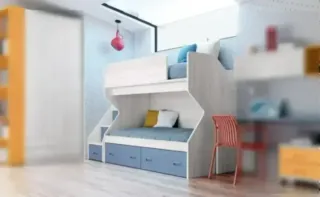 Litera de madera de gran tamaño, ideal para habitaciones infantiles o juveniles. Su diseño combina colores neutros que se adaptan a cualquier decoración. - Estructura principal de madera. - Barandilla de seguridad en la cama superior. - Escalera de acceso. - Cajones integrados en la base.