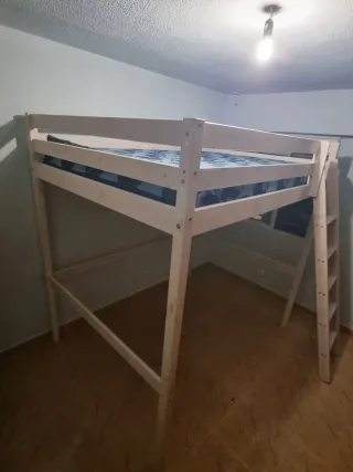 Litera para cama de matrimonio de 135cm. Comprado en ikea a mi me fue muy bien ya que mi cuarto era pequeño y me ocupaba mucho una cama grande así que la litera fue la mejor opcion así puede poner el pupitre debajo con mi ordenador al lado una cómoda para la ropa y tenia puesto un puf para sentarme en el suelo... (Aparte)También vendo las estanteria blancas 3 estanterías por 20€ Si te quieres llevar todo seria 210€ (Litera,colchón y 3 estanterías) - Estructura de madera la cama tiene estas medidas Ancho: 152cm Largo: 208cm Alto desde la valla hasta el suelo 213cm - colchón de 135cm 🚫No hago envíos, venir a buscar con furgoneta!