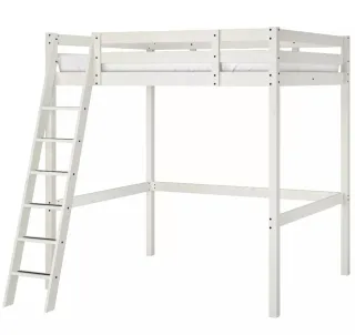 Cama litera de matrimonio de IKEA, ideal para optimizar el espacio en la habitación. Su diseño moderno se adapta a cualquier estilo. Modelo STORÅ. Con colchón de regalo. - Estructura robusta de madera. - Escalera de acceso segura. - Acabado en color blanco.