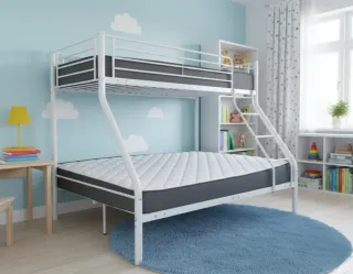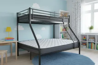 Estupenda, barata y practica litera con estructura metálica, con cama de matrimonio (135cm) abajo y cama de (90cm) arriba. 📐Medidas: •Cama de abajo: 145 x 200 cm (para colchon de 135 x 190 cm). •Cama de arriba: 90 x 200 cm (para colchón de 90 x 190 cm). •Altura: 160 cm Peso aconsejable Cama de abajo: 200Kg. Peso aconsejable Cama de arriba: 100Kg. ✨Color: Gris / Negro / Blanco. 🚚Porte y montaje no va incluido en el precio. 🚛Realizamos envíos. - Más información aquí 722*30*9011