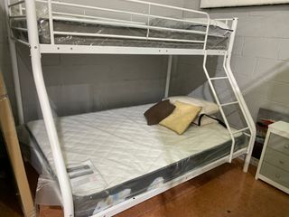 ¡¡ PÁGALO CUANDO LO TENGAS EN CASA !! ¡ Respuesta rápida WHATSAPP, TELÉFONO, Facebook, Wallapop ! Mueble nuevo, 2 años GARANTÍA Cama matrimonio 135x190 cm. Cama individual 90x190 cm. Marco de metal resistente, seguro y duradero. Comodidad y estabilidad. Seguridad adicional: - Barandilla litera superior. - Escalera utilizable al lado derecho o izquierdo. - Somier metálico. Colores: Blanco, Negro, Gris. Medidas: • Alto: 160 cm • Ancho: 145 cm • Largo: 200 cm Peso aconsejable Cama abajo: 200kg Peso aconsejable Cama arriba: 100kg Precio sin colchones: 190eur Precio con colchones: 350eur TEL 658089730 jose luis