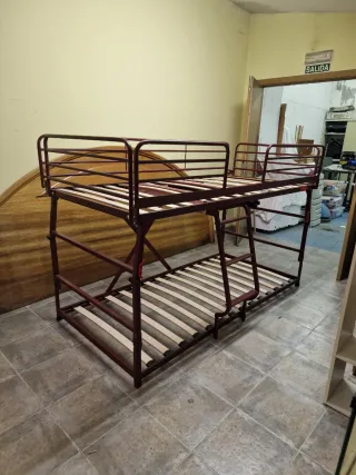 Literas plegables en perfecto estado, listas para usar. Estructura de metal y madera. Muy resistentes y de estupenda calidad. Solo recogida. Puedo proporcionar contactos para el desmontaje y transporte (al margen de la venta de las literas) Nueva +3000€. Si necesitas más fotos o información, escríbeme sin problema.