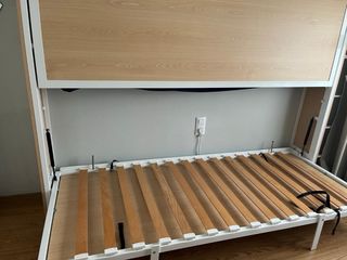 Litera plegable que incluye dos colchones en perfecto estado. Se ancla a la pared y tiene muy poco uso, es muy práctica sobretodo para habitaciones pequeñas, ya que una vez te despiertas, plegas las camas y tienes todo el espacio del dormitorio disponible. Mueble robusto y de buena calidad, se compró por 850 euros hace menos de 2 años, esta regalado.