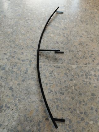 Barandilla para cama Barandilla para litera. Es metálica tubular pintada en negro. Mide aprox 1,54 de largo. En la parte más alta redondeada tiene unos 25 cm. Aporto fotos de medidas de como lleva las fijaciones. La tuvo puesta una litera de madera como protección. Rebajada. Sin devolucion