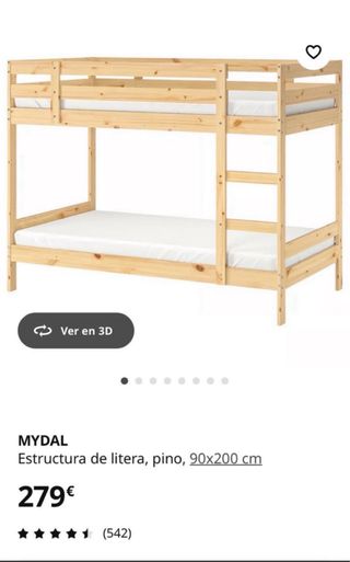 lLitera madera Ikea modelo Mydal. No incluye colchones ni ropa de cama. Regalo almacenaje de bolsillos azul