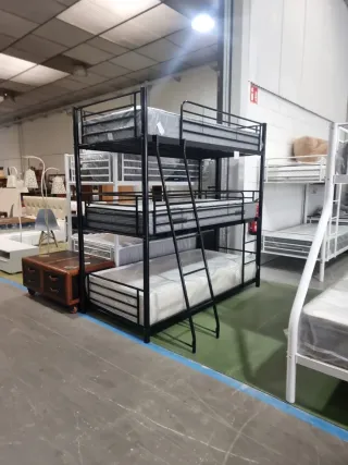 🚚✅ENTREGA GRATUITA 🚚✅. Llama *641*70*63*34* 🥇 2 años de garantía . 🤌Las caracteristicas de seguridad adicionales incluyen una barandilla para la litera superior y una escalera integrada, que puedes utilizar tanto al lado derecho como al izquierdo. Somier Metalico de encajes . Entregado con embalaje original. Disponible en blanco 🤍, negro 🖤 y gris🩶. 🏷️Litera Individual (90X190): 175€ 🏷️Litera Matrimonio (135X190): 190€ 🏷️Litera Triple (90X190): 199€ Disponemos ademas de: - Sofás - Muebles de salón - Mesas de comedor - Armarios - Mesitas, Sinfonier, Cómodas.. - Aparadores - Colchones - Canapés y MUCHO MAS...