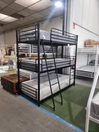 Litera metálica de tres niveles, ideal para optimizar el espacio. Su diseño moderno se adapta a cualquier habitación. Nueva de fabrica - Estructura robusta de metal. - Acabado en color negro y blanco. No incluye colchones Se entrega en caja Dudas llama o escribe al WhatsApp 641706334