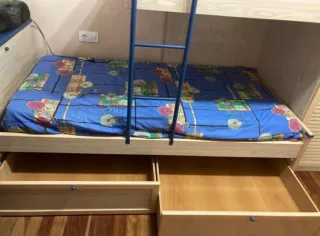Litera de madera de la marca San Francisco, con dos camas de 90x190cm. Incluye escalera con cajones