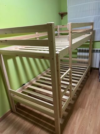 Se venden literas de pino junto con dos colchones. - Estructura de madera. - Colchones de tela.