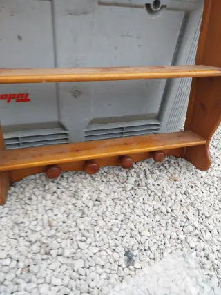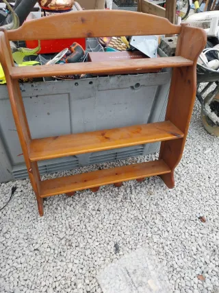 Estantería de madera con un diseño rústico y encantador. - Tres niveles de almacenamiento. - Ideal para colgar en la pared o colocar sobre una superficie. - Acabado natural de la madera.