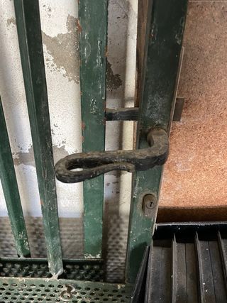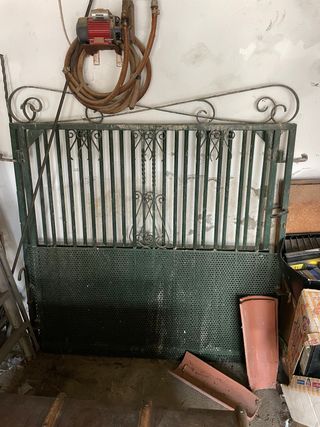 Elegante valla de hierro forjado con un diseño clásico y detalles ornamentales. - Estructura robusta de metal. - Acabado en color verde oscuro. 148cm de largo - 165cm de alto - 3cm de ancho son dos piezas
