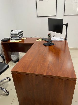 Conjunto de mesa de despacho con anexo auxiliar. - Se vende tal y como está, no la vamos a desmontar. - En la última foto se aprecia un pequeño desperfecto del uso. - Las medidas aparecen en las fotos indicadas.