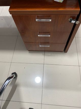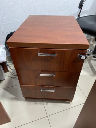 Cajonera de madera con un diseño elegante y funcional. Cuenta con ruedas para facilitar su movilidad y una cerradura para mayor seguridad. - Tres cajones amplios. - Tiradores metálicos. No hago envíos