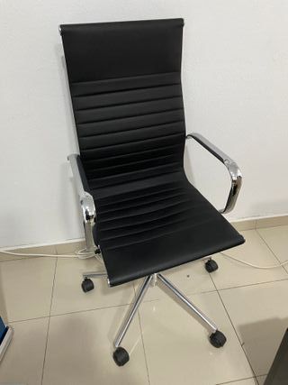 Sillón de escritorio con diseño moderno y funcional. - Respaldo reclinable para mayor comodidad. - Base y brazos de metal. - En las fotos se pueden apreciar algunos roces del uso.