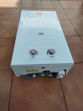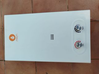 Calentador de agua a gas de la marca Arca. - Color blanco. - Dos mandos para regular gas y agua. - En muy buenas condiciones.