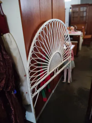 Cabecero de cama con un diseño semicircular y un acabado en mimbre.Cabezal para cama de 135,mide 135 y de alto 145cm - Estructura de mimbre. - Color blanco.