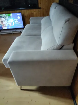 Sofá terciopelo gris super chulo patas plateadas