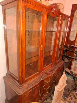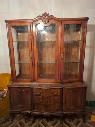 Mueble antiguo de madera y cristal