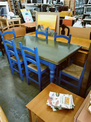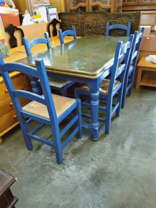 Mesa y 4 Sillas Azules