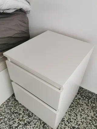 Mesita de noche Kullen de Ikea, con un diseño moderno y funcional. - Dos cajones para almacenamiento. - Acabado liso y fácil de limpiar. Precio nueva por ud: 29,99€