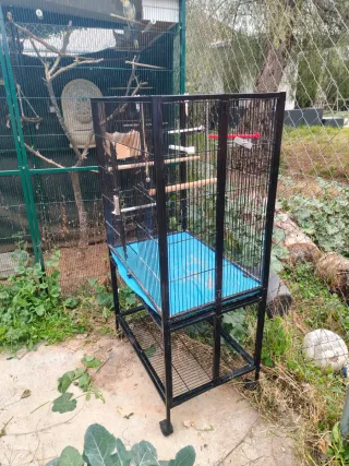 Jaula espaciosa para loros, agapornis.. - Estructura metálica negra. - Incluye accesorios para pájaros.